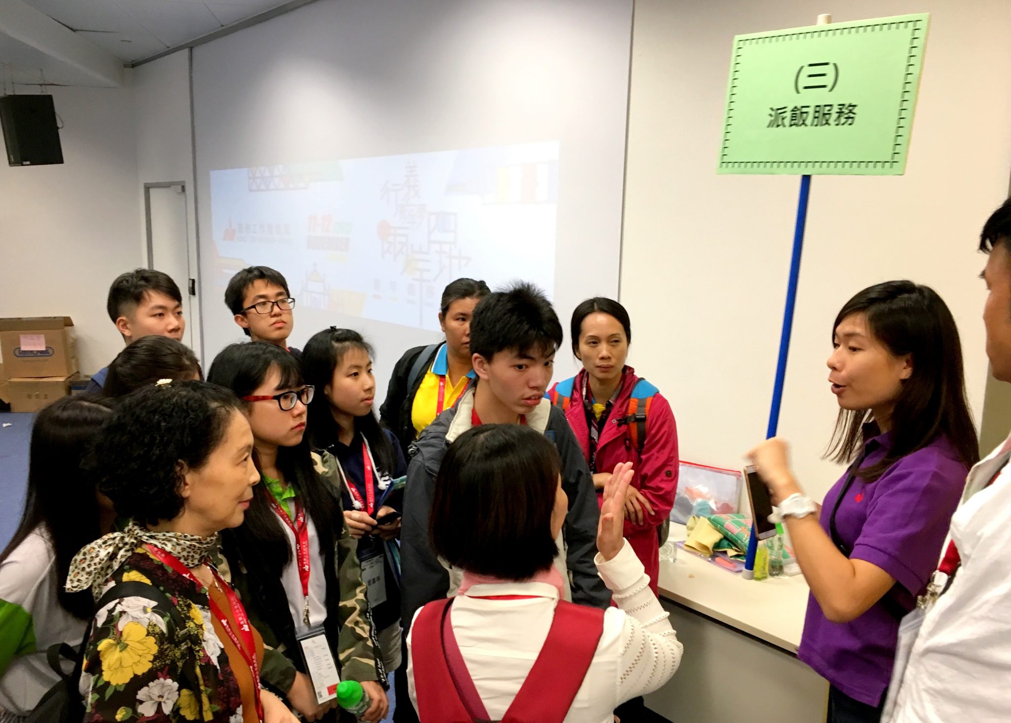 - Team leaders explaining the background information and procedures of the volunteer service to participants.