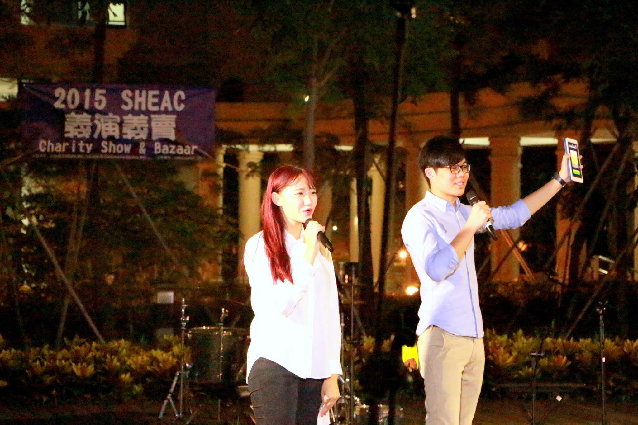 Emcees of the charity show: Rosaly Zhang and Murphy Sou from SHEAC. 義演司儀:張思思和蘇宏歷同學。