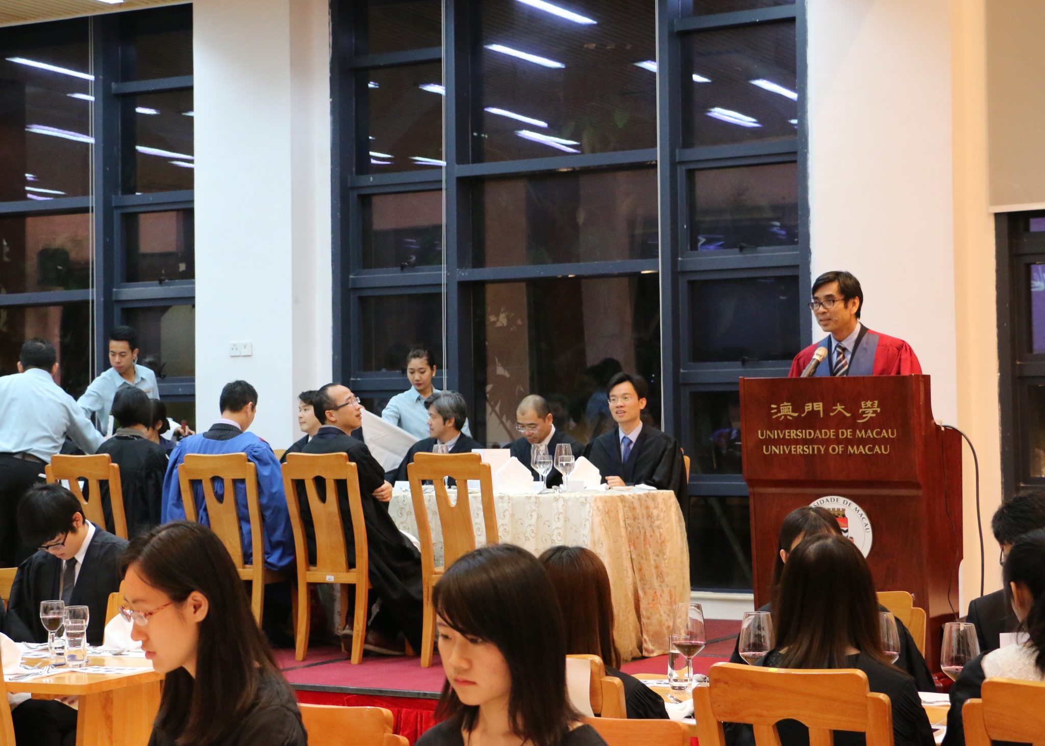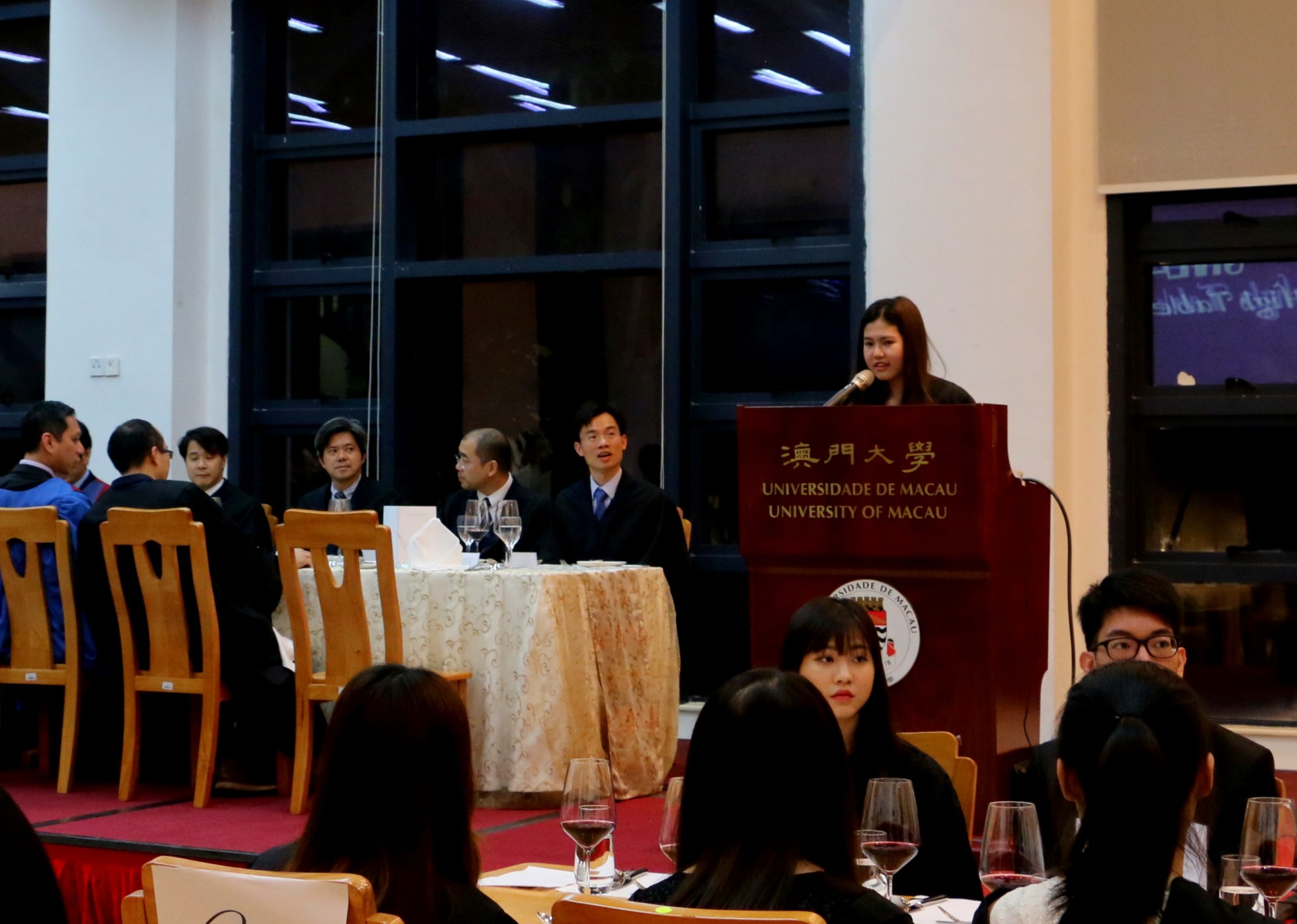 More than 200 students participated in this last high table dinner of the current academic year. They were also joined by College Fellows Dr. Brian Hall (FSS), Dr. Anna Kou (FST), Prof. Kou Kun Pang (FST), Dr. Agnes Lam (FSS), Dr. Angus Lam (FST), Dr. Simon Lee (ICMS), Dr. Dennis Wang (FED), Dr. Alfred Wong (FST), Dr. Matthew Yap (FBA), and Dr. Zhang Yang (FBA).