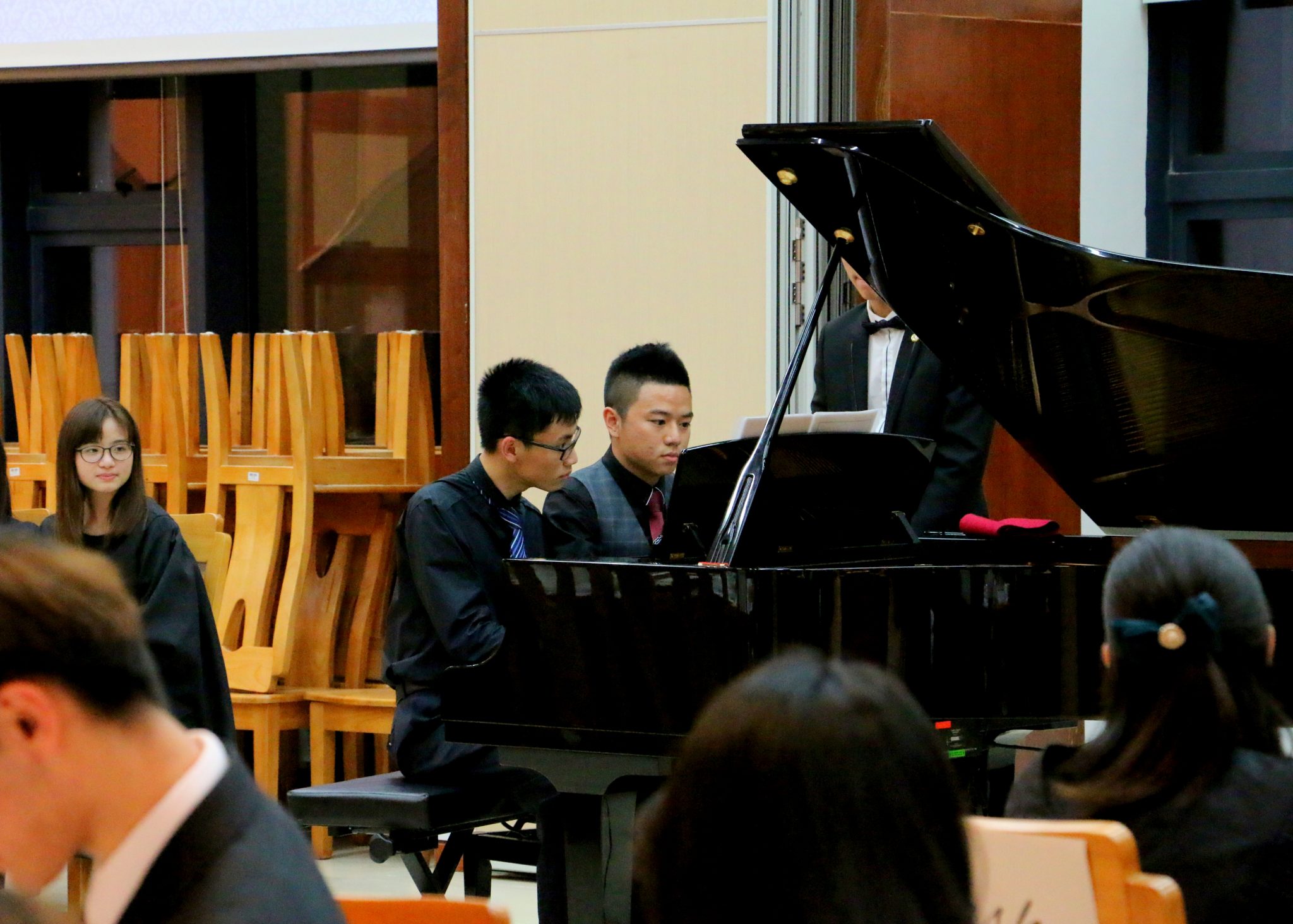 Two students, Mr. Xu Jing and Mr. Yang Qiyi, played Piano Duet for two pieces, “Canon en D” and “Military March”. All the audience were immersed in their charming melodies.