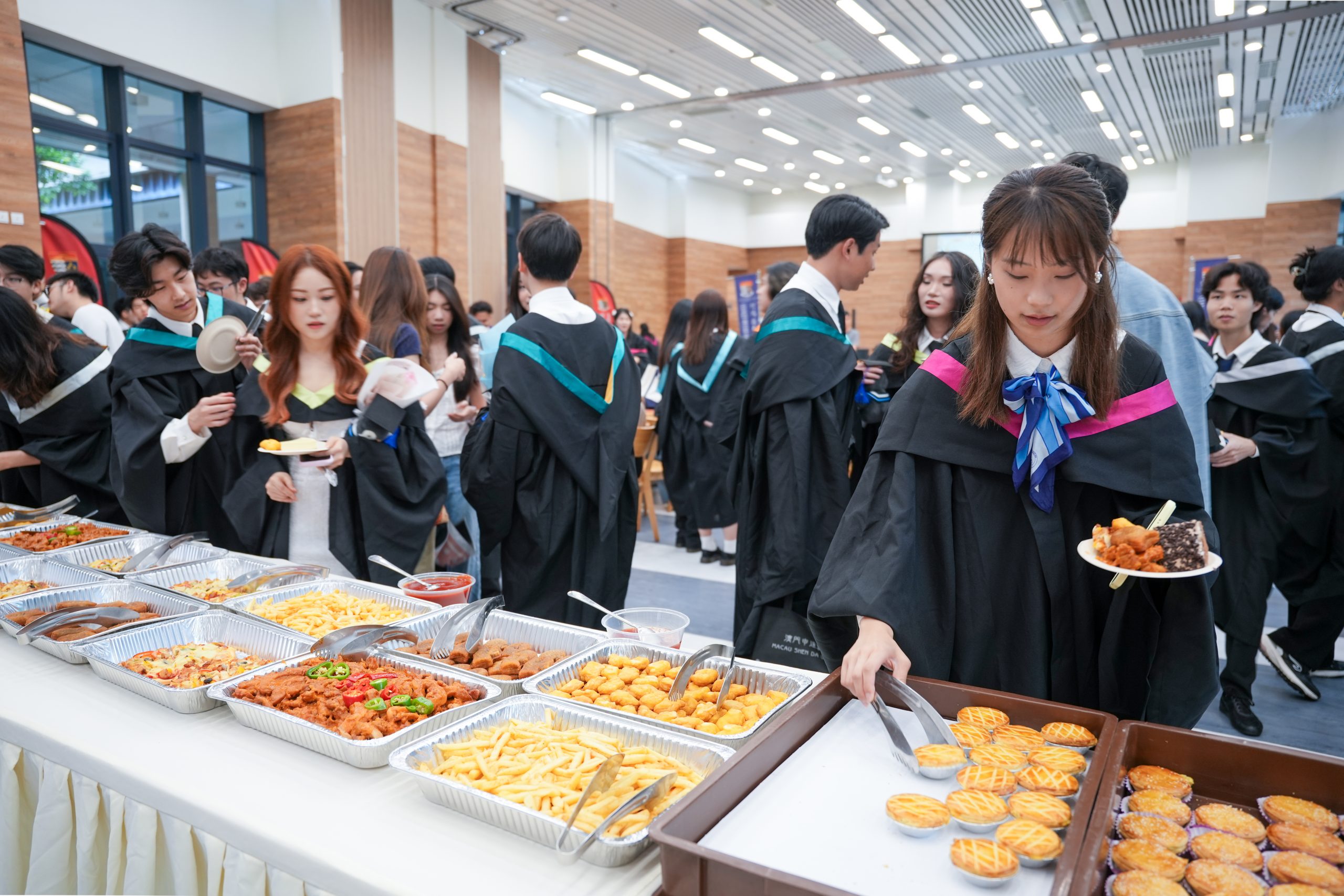 At the invitation of College Master Prof. Kathy Luo, the event gathered over 60 graduating students, professors from various faculties, more than 30 family members and friends, and nearly 20 student volunteers. The atmosphere was warm and lively. Graduating students, dressed in academic gowns, took group photos under the witness and joining of the College Master and professors, reminiscing about their college journey and looking ahead to the future.