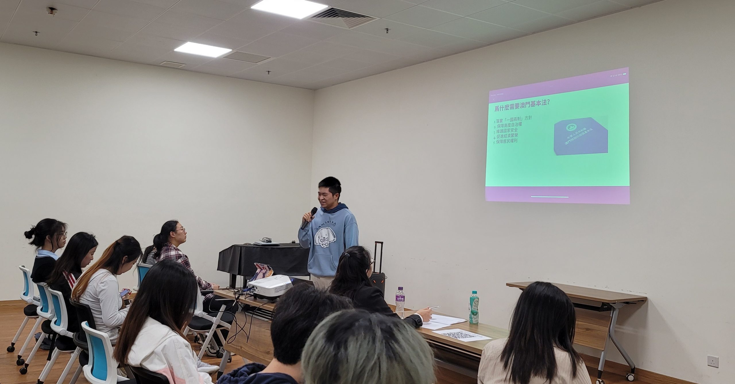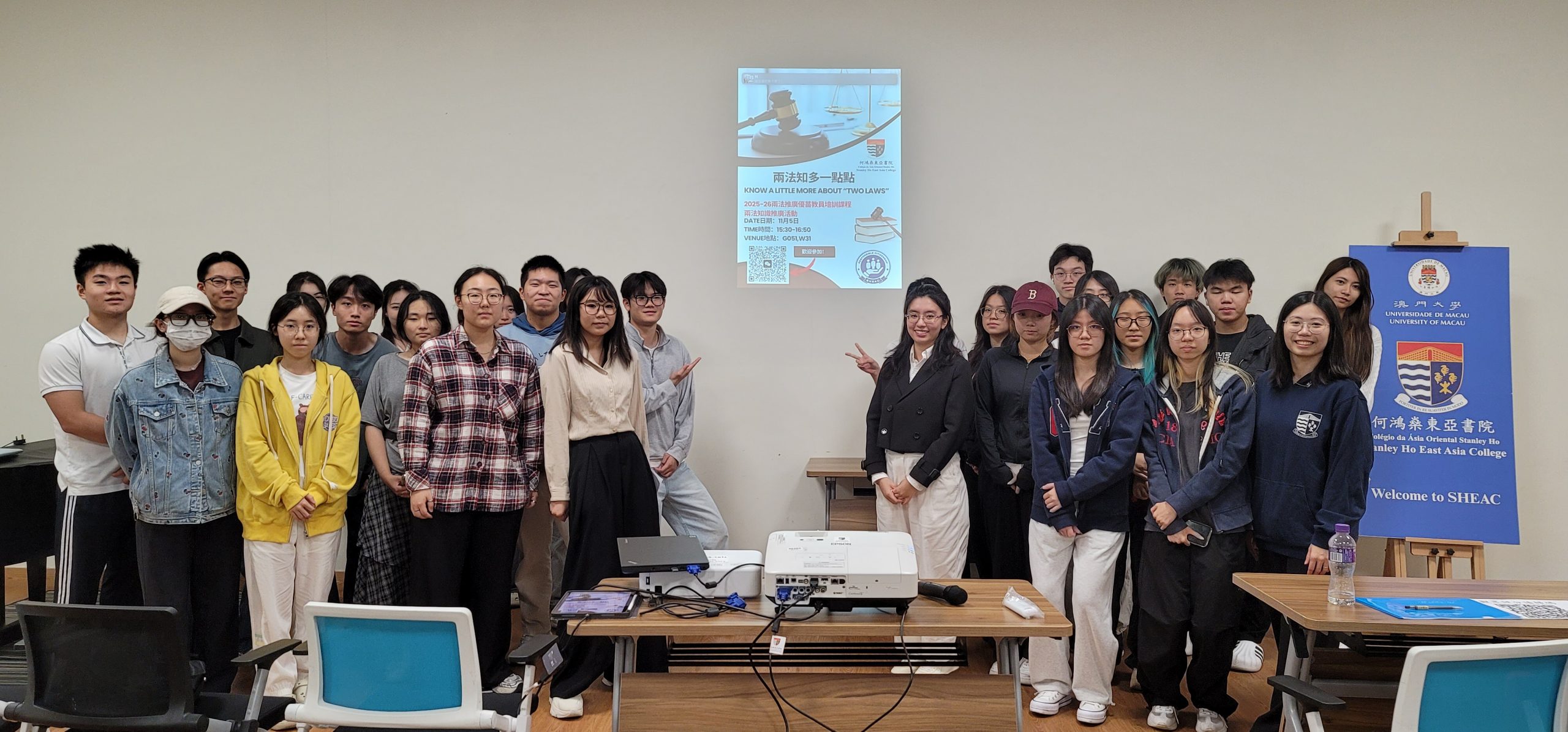 2025 年 11 月 5 日下午,澳門大學何鴻燊東亞書院的六位「兩法」學員,在參加由澳門大學法學院憲法與基本法研究中心、十間住宿式書院和澳門基本法推廣協會聯合主辦的「澳門大學憲法與基本法推廣優苗教員培訓課程」後,順利開展了試教活動。