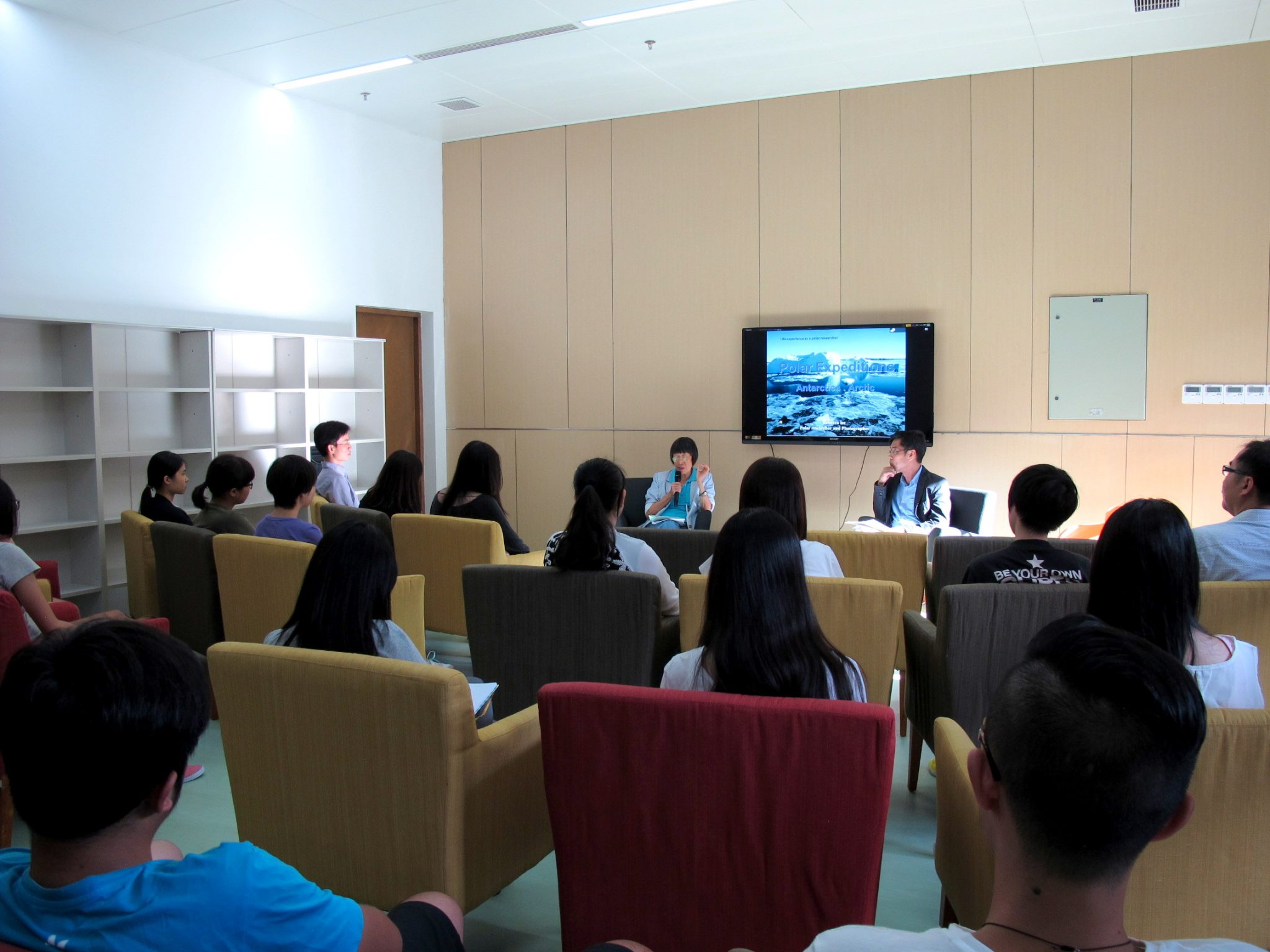 Dr. Lee encouraged students with her own experience that spans. The first 20 years, study hard and train up body and mind; the second 20 years, earn a living and open up minds; the third 20 years, realize dreams and contribute to society. This is Dr. Lee’s original life theory of “three 20 years”. Dr. Lee loves arts, and uses it as a tool to achieve her dreams, coupled science with arts, and persists on to polar expedition for over 30 years. As an art director, Dr. Lee has been deeply impressed by the breath-taking scenery in the poles. Seeing this beauty, Dr. Lee says she would forget the hazard in her expedition. While talking about these, her words were ordinary, like telling a story another person had experienced. She made an observation about life: overlooking the big world in your own small life. “The map of the world is huge, but only a small piece of China, and at the bottom of China, only a grain of Hong Kong. My Hong Kong.” Realizing her tininess, she has learned to cherish every moment. Hence, on the way to pursue her dreams, Dr. Lee has never wasted any time.