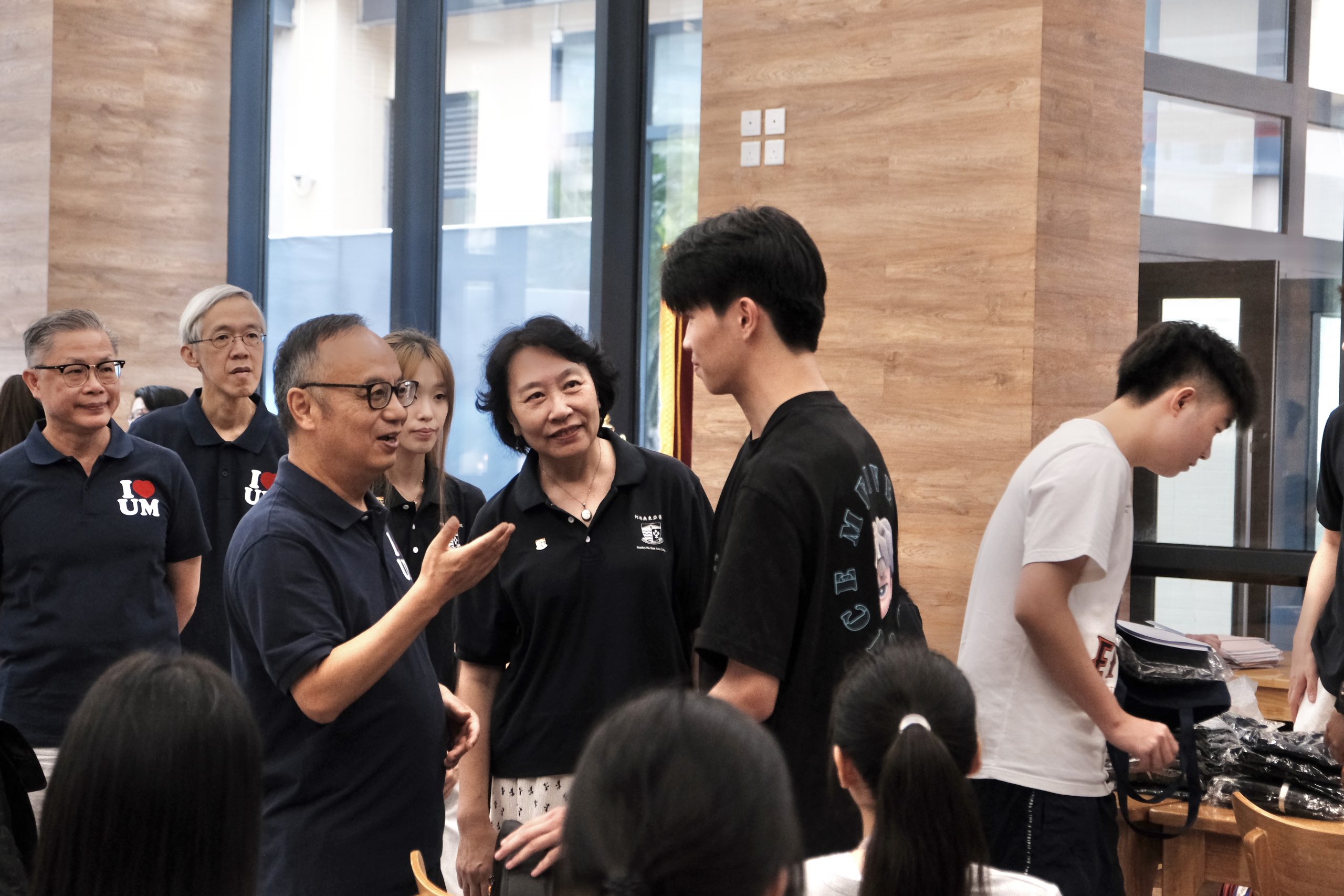 圖1-4:澳大校長宋永華教授、副校長莫啟明教授在迎新週第一天,到本院了解書院入住情況,並在院長羅茜教授陪同下,與家長和學生親切交談及合照。