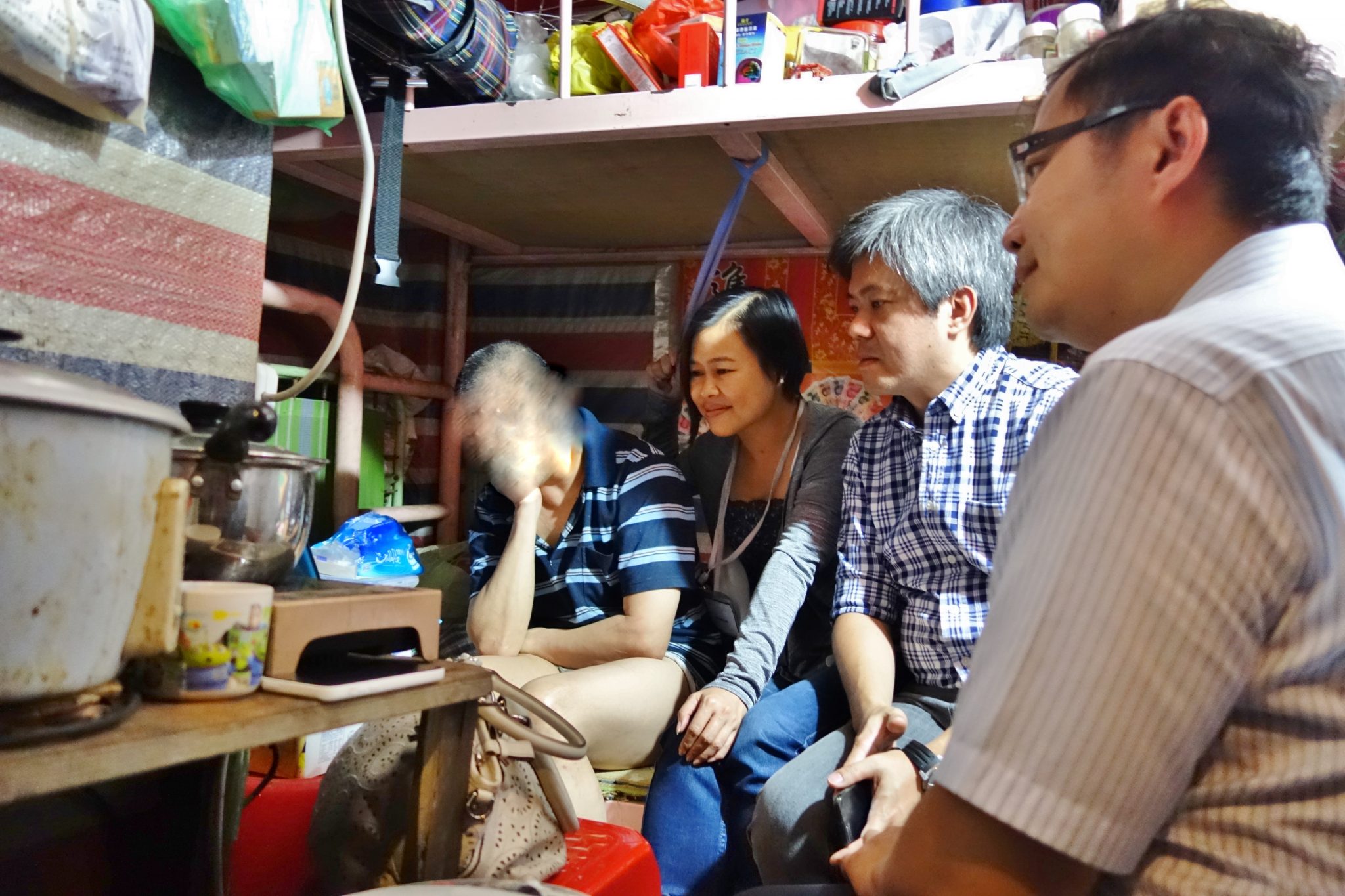 SHEAC Fellows Dr. Agnes Lam, Dr. Angus Lam, and Mr. Walter Wan visited a resident who is chronically ill, lacking self-care ability and dwelling in a 40-ft. cubicle room.