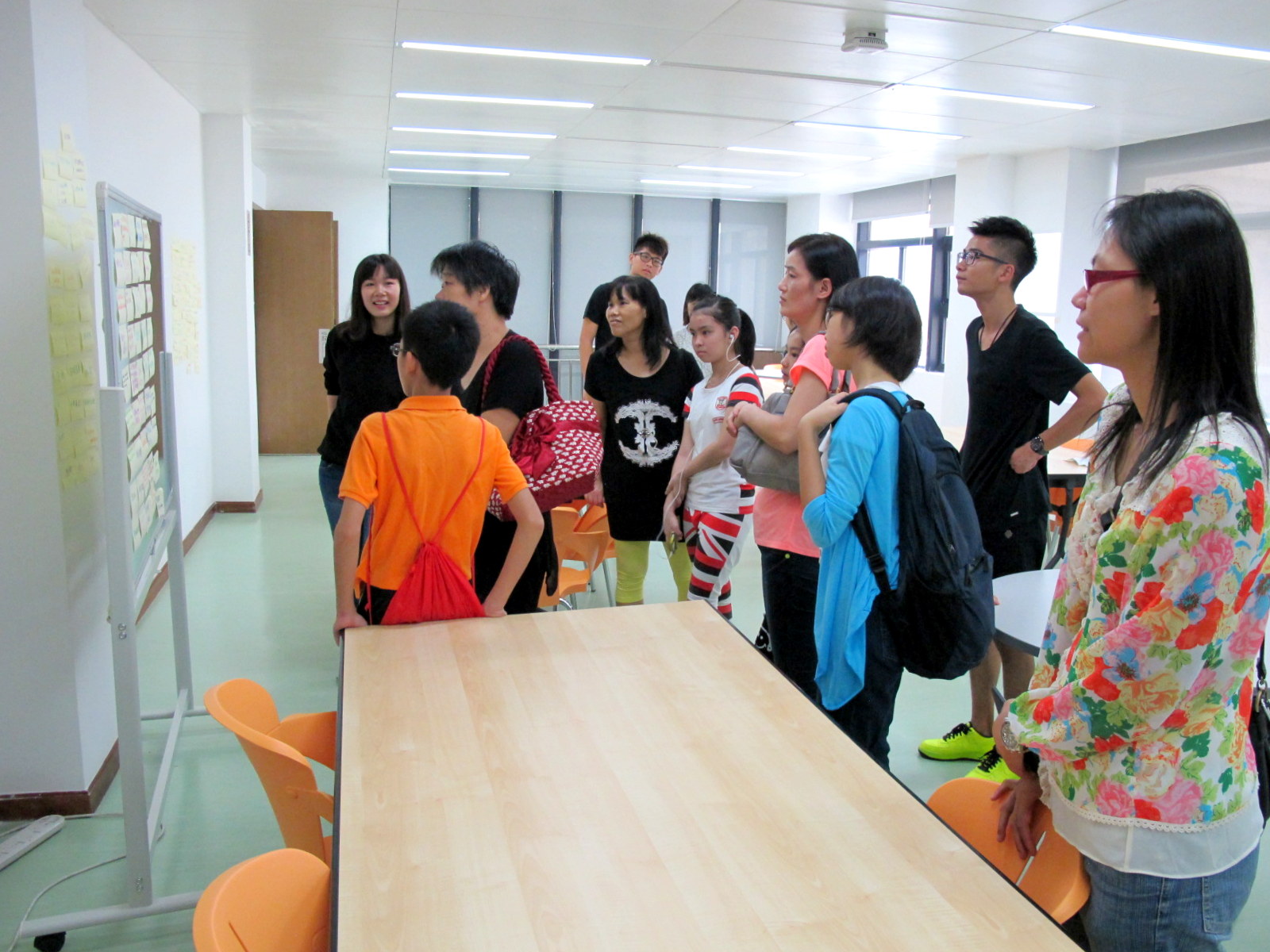 At around 11:30am, the first batch of visitors, the family group, arrived. Most of them were children who were adorable and lively. Led by the SHEAC students, all the three groups of visitors toured around the College. The College students eagerly introduced the facilities, their daily lives and activities in the College. They also answered questions about the fees of the University and residential colleges. Through such casual conversations, volunteers and visitors were getting familiar with each other, and loads of laughter could be heard all the way.