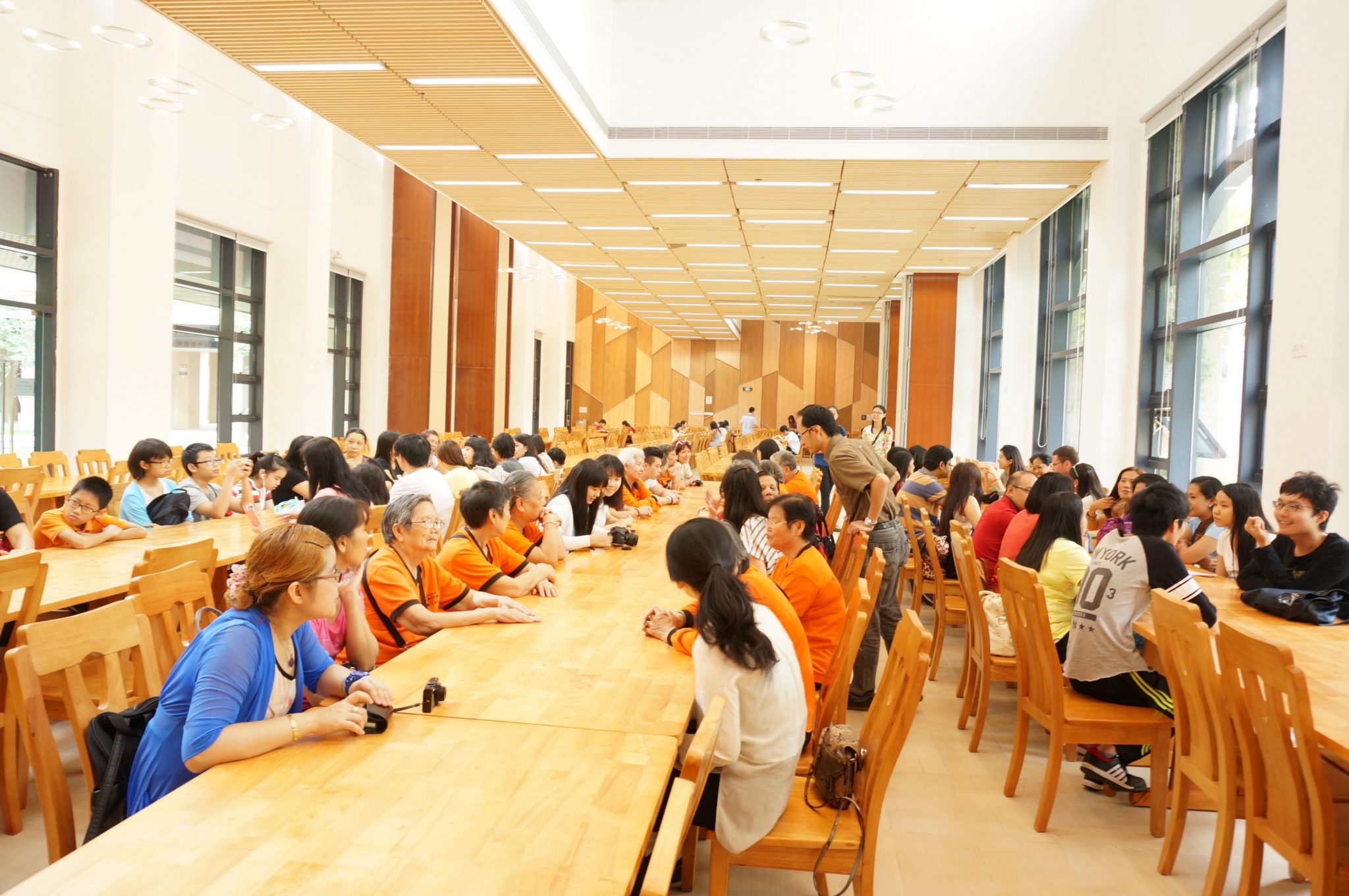 At around 11:30am, the first batch of visitors, the family group, arrived. Most of them were children who were adorable and lively. Led by the SHEAC students, all the three groups of visitors toured around the College. The College students eagerly introduced the facilities, their daily lives and activities in the College. They also answered questions about the fees of the University and residential colleges. Through such casual conversations, volunteers and visitors were getting familiar with each other, and loads of laughter could be heard all the way.