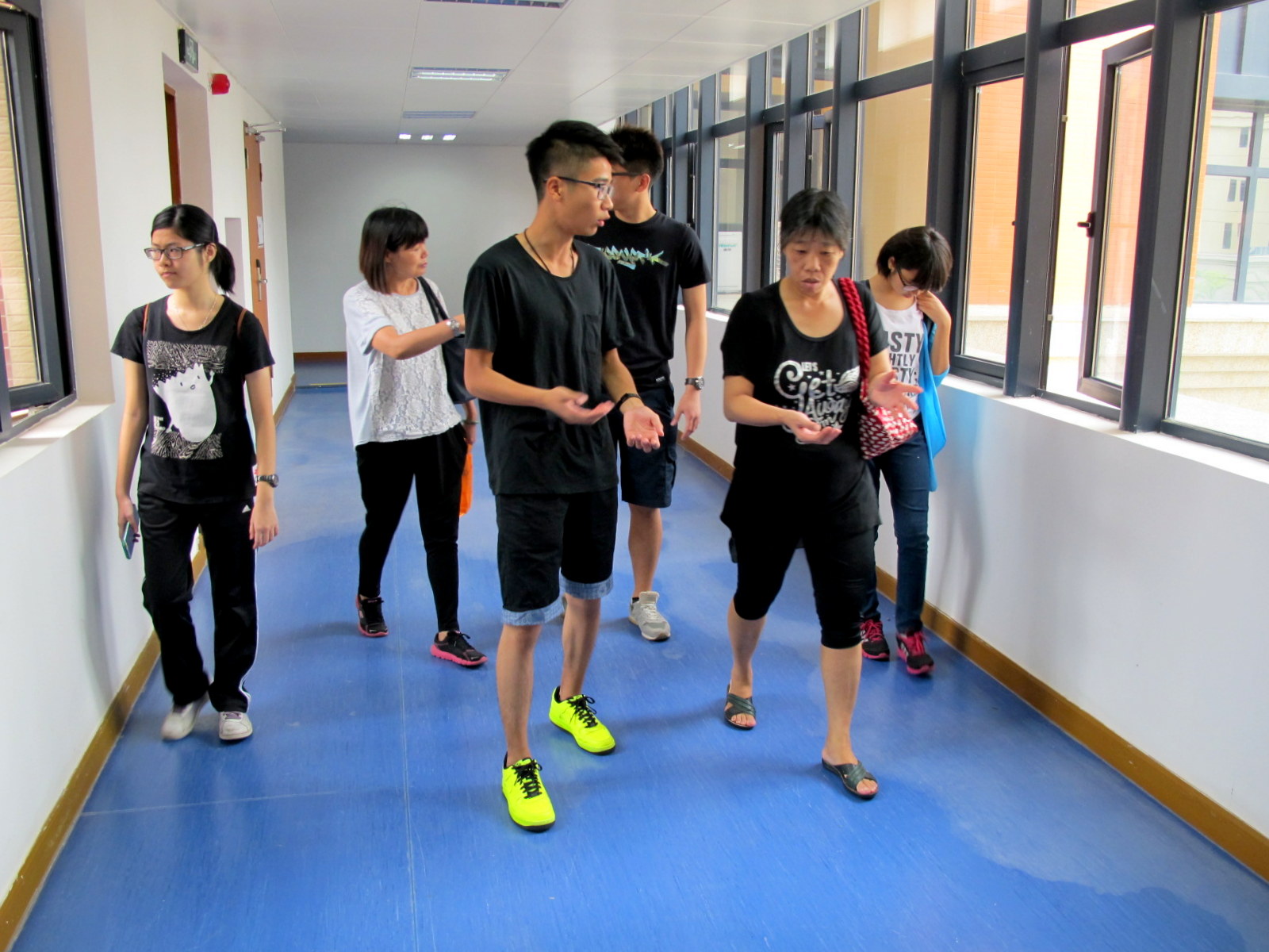 於上午11時30分左右,我們首先迎接了來自家庭組的訪客,家庭組裏以小孩子居多,他們都十分活潑可愛。在一眾義工的帶領下,三組訪客分批參觀了何鴻燊東亞書院內部,書院同學們熱情洋溢的向他們介紹了書院的各項設施、同學們平日的生活情況及活動,並且解答了他們關於學校收費的問題,義工同學們就這樣開始與訪客們熟絡起來,一路上笑聲不斷。