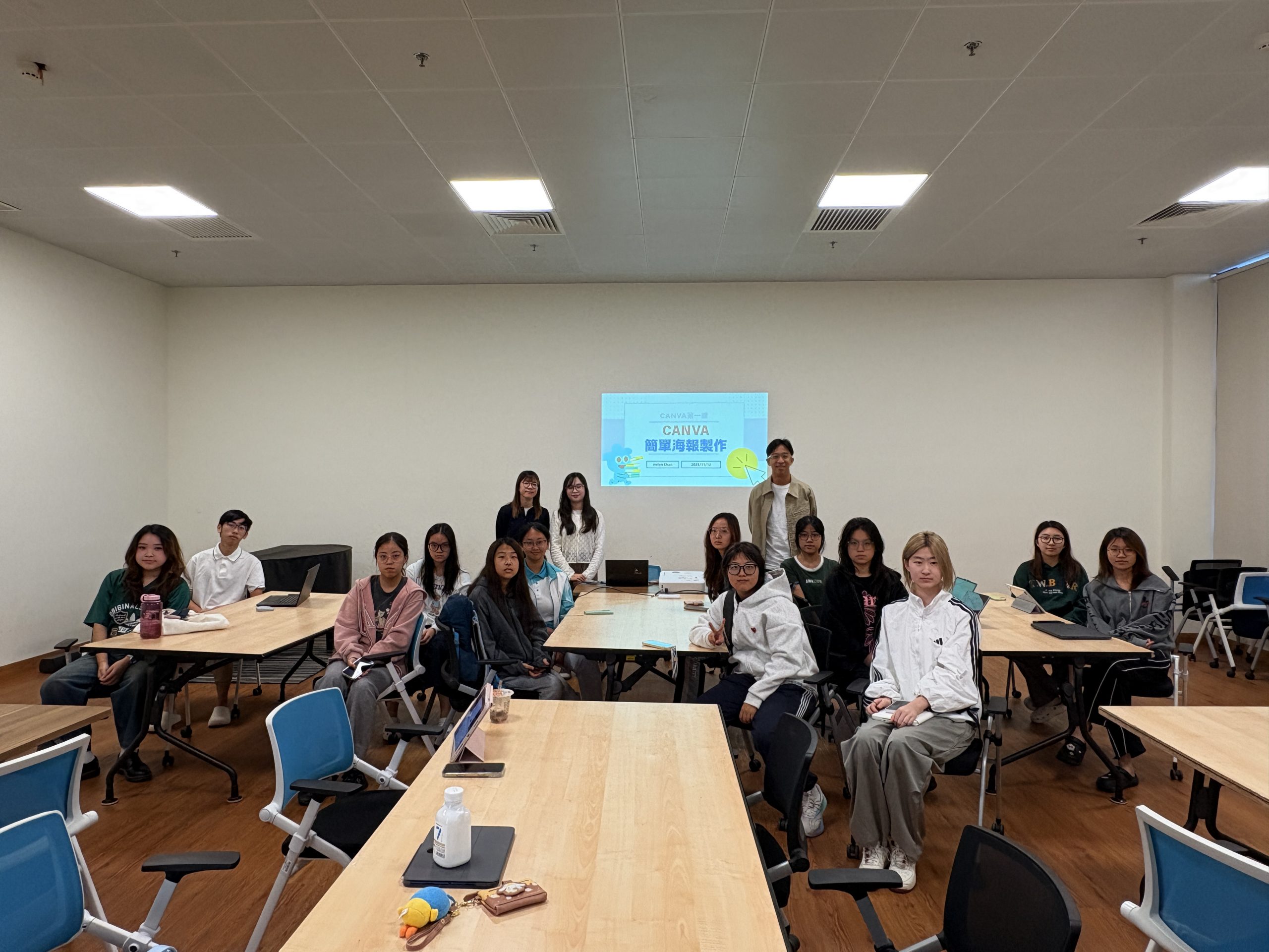 上午場為《Canva設計工作坊》,帶領同學掌握實用微技巧與基礎設計原則,讓大家日後製作海報、簡報時更加得心應手、游刃有餘。