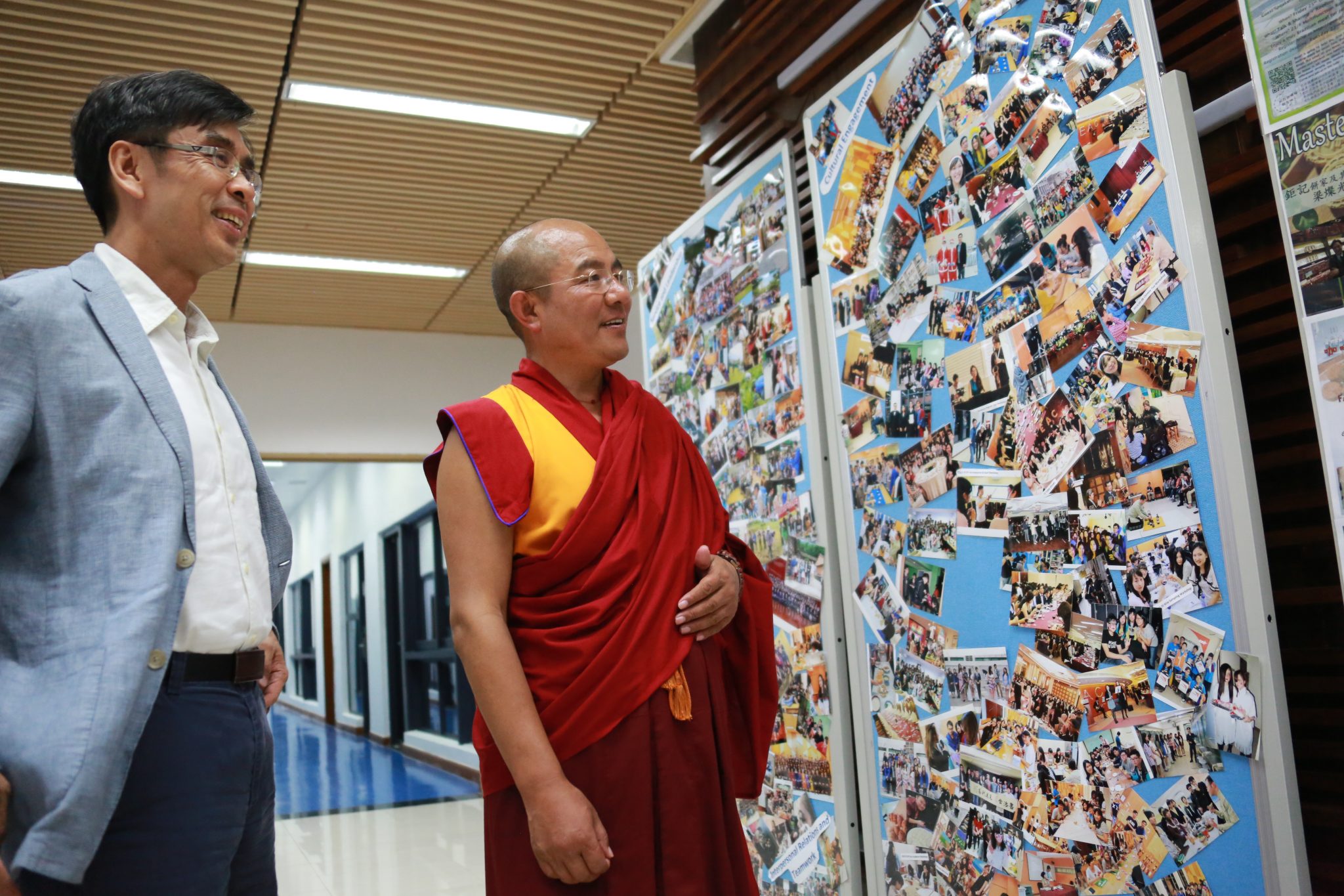 講座結束後, 何鴻燊東亞書院院長姚偉彬教授和澳大佛教學會的同學們帶著堪布參觀了澳大校區及書院內部,堪布非常喜歡澳大的校園環境,並讚歎校園環境優美、舒適,澳大的師生很有福報。