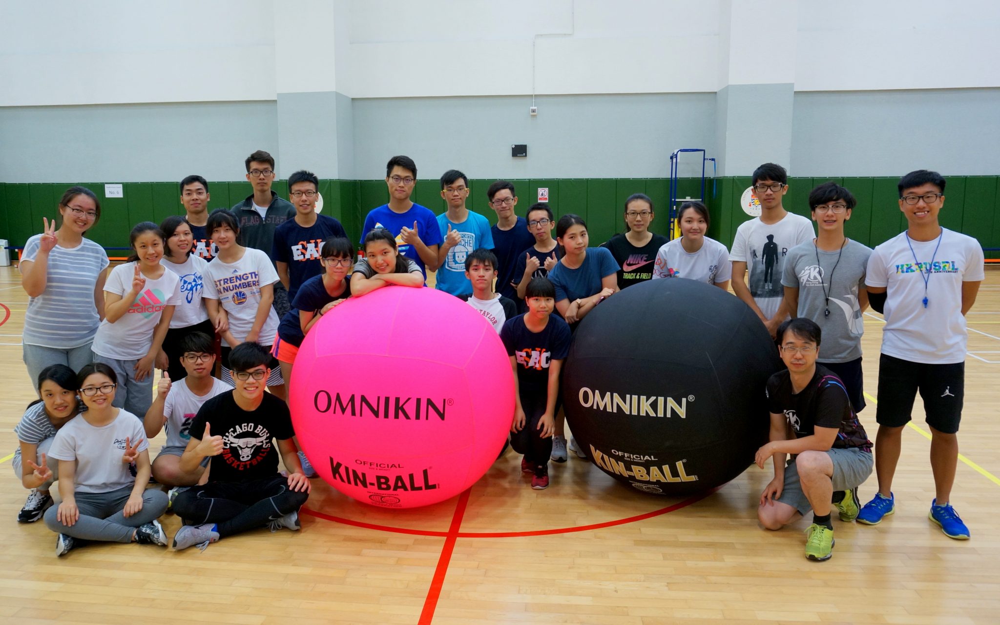 Kin-ball is originated in Canada. The inventor’s aim was to motivate more students to participate in sports, as kin-ball emphasizes teamwork, respect and inclusiveness. Since November 2015, SHEAC and HKKA have co-organized a series of kin-ball activities, including experiential sessions, beginner and intermediate training, level-1 coach, and level-1 referee courses; over 100 participants have joined, a sign of growing popularity in the UM community. In April this year, SHEAC students, with students from Choi Kai Yau College (CKYC), formed two teams to participate in the Hong Kong Kin-Ball Championship and achieved satisfactory results. In July, the UMSU Kin-Ball Club was formally founded.