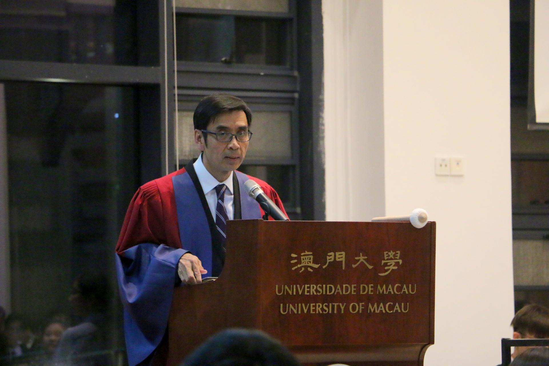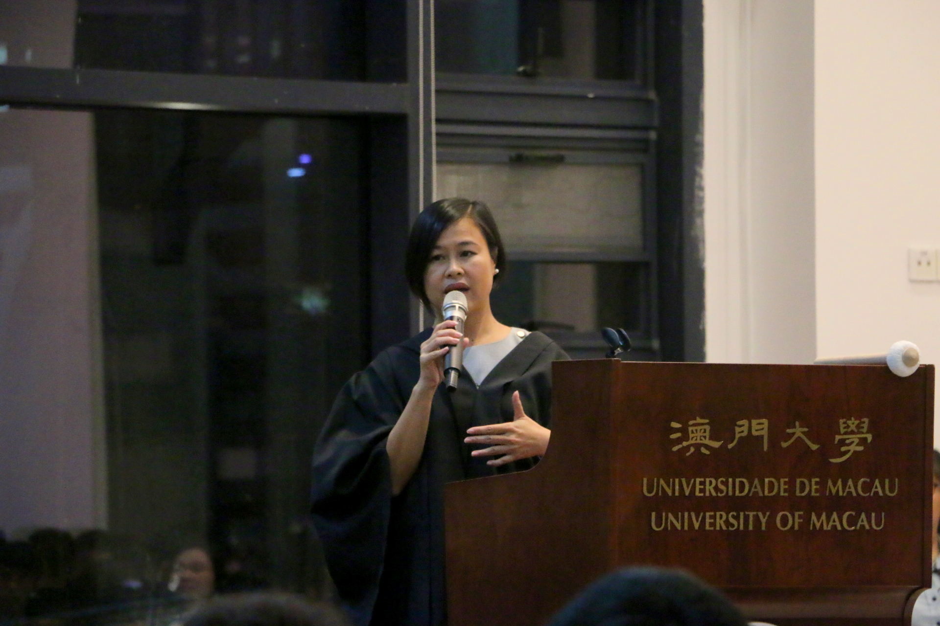 On the evening of 12th October, Stanley Ho East Asia College organised the commencement and the first high table dinner of the school year 2017/18 at the College Refectory. This event was also an iconic tradition of residential colleges. The College invited Professor Lam Iok Fong, Agnes as the guest of honor of the high table dinner. Professor Lam is a newly elected member of the Macao Legislative Assembly, the Acting Director of the Centre for Macau Studies, and Associate Professor the Department of Communication of the University of Macau. College Master Professor Iu Vai Pan hosted and joined the dinner with nearly 300 students and teachers.