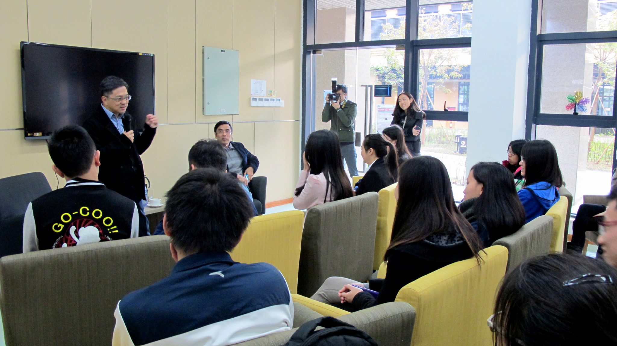 On Wednesday 14th January afternoon, thanks to the coordination of the Student Affairs Office, Stanley Ho East Asia College had the privilege to invite Mr. Francis Mak, a well-known broadcaster from Hong Kong, as the honorable guest of the Master’s Tea to share with students his lively experiences. Mr. Mak’s radio program ‘My Heart Will Go On’ has been one of the most popular programs in Hong Kong. He also founded ‘Never Give Up Association’ which provides coaching to soul and general education to high school students. Mr. Mak was awarded the Medal of Honour in 2005 and a Bronze Bauhinia Star in 2011 by the HKSAR Government to recognize his dedication in promoting optimistic and positive attitudes in the community.