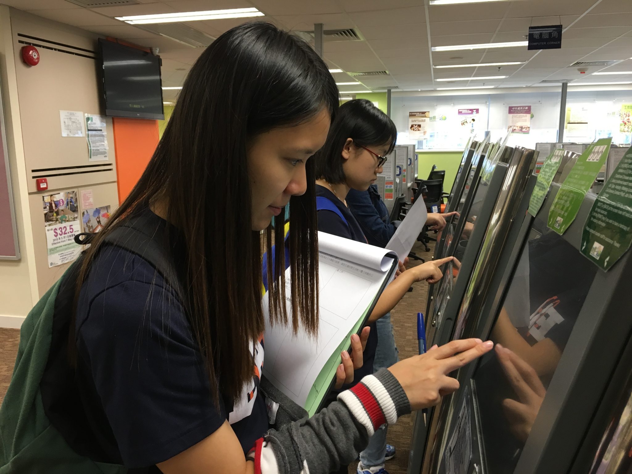 Helped looking for suitable jobs for local residents.  同學們在社區就業中心幫助居民搜尋合適工作。