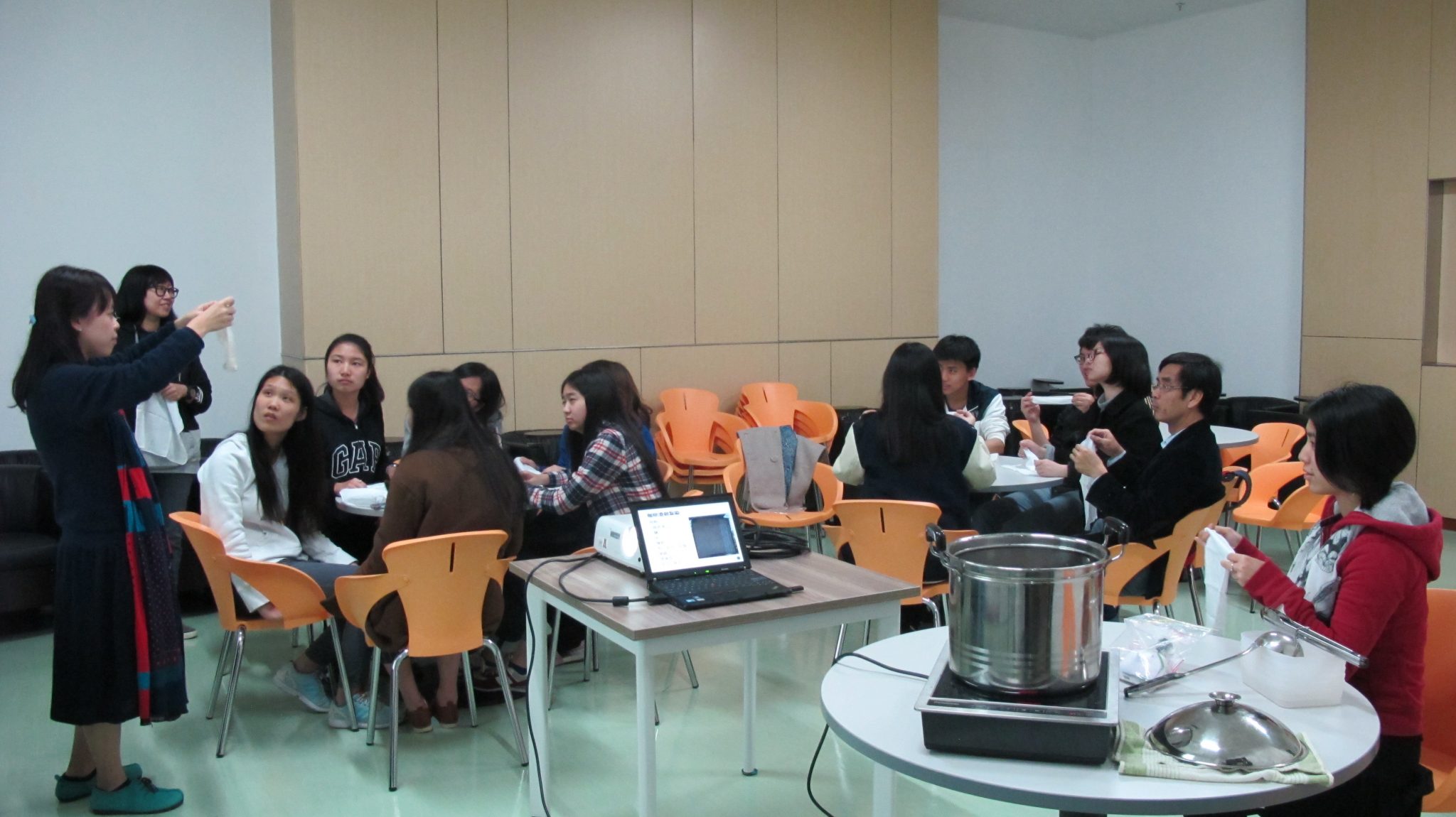 瞭解了基本概念之後,同學們開始嘗試咖啡渣紮染,製作屬於自己的手帕。活動現場十分熱鬧,參加者發揮想像,設計自己喜歡的圖案。大家也從中認識到紡織品對環境的影響。接著,同學們又用咖啡渣和椰子油製作了天然磨砂膏。活動現場還有一些公平貿易的產品——能量棒與巧克力給大家嘗試。