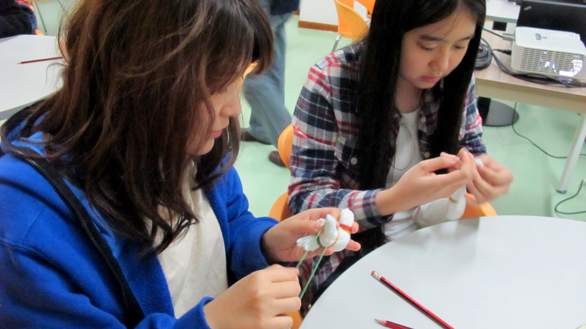 - Students were carefully designing the patterns of their handkerchiefs.